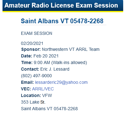 Another successful test session by the Northwestern Vermont ARRL VE Team.